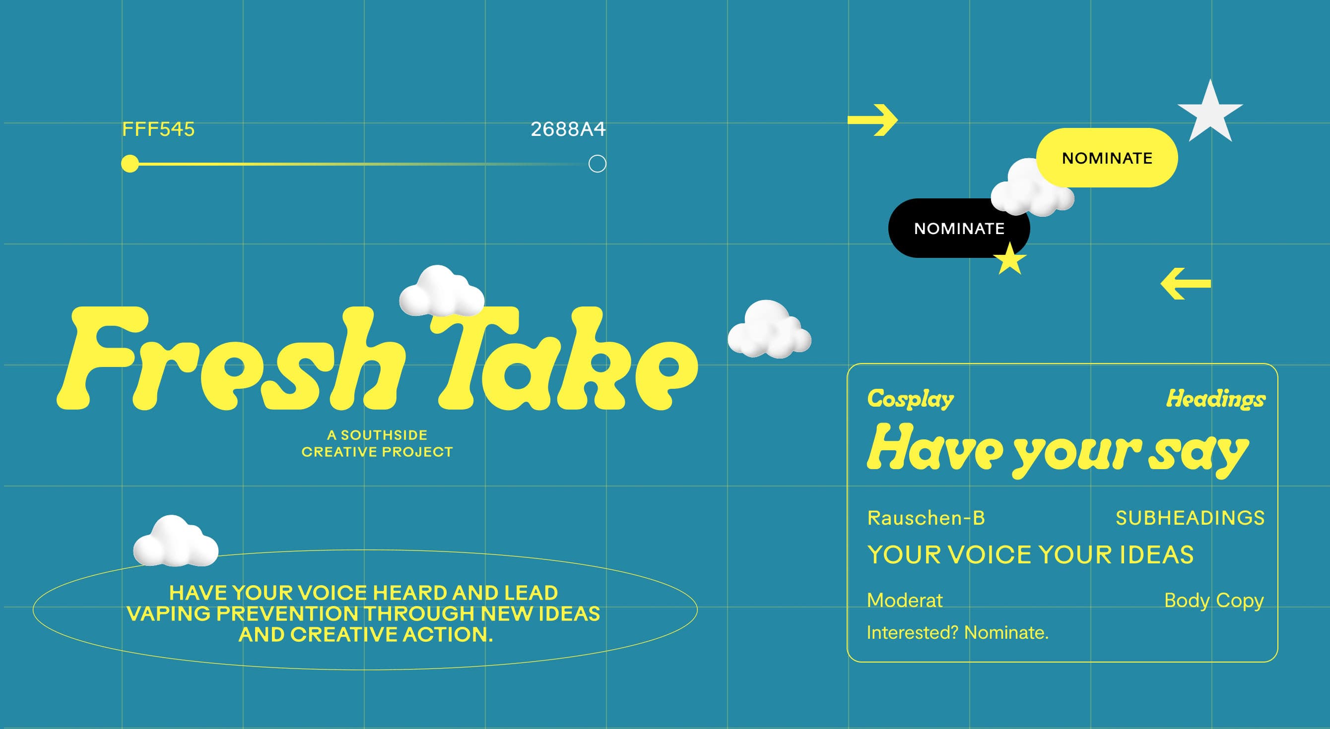 The FreshTake brand was developed in close consultation with youth leaders to ensure it felt true to them—bold, flexible, and expressive. Visually, it channels the energy of a festival of ideas: creative, inviting, and full of possibility.